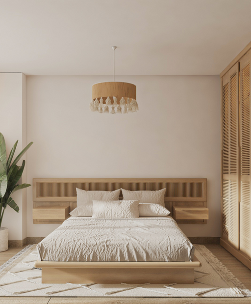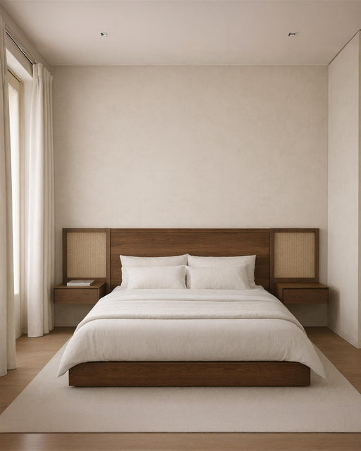 Minimal natural design that brings coastal vibes all year round. Details:- Made of solid zan wood and cane headboard. - Displayed bed in natural w...