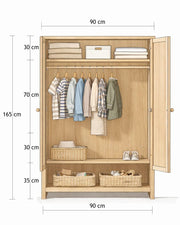 The Sagewood Wardrobe combines natural oak with soft sage accents in a thoughtfully designed, child accessible layout. Featuring a practical interior and an open lower section for easy reach, it encourages independence while keeping your child's space calm, organized, and beautifully balanced.