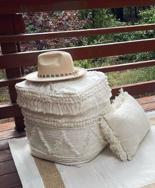 Off White cotton with Jute, bringing texture to any space.Each pouf is one of a kind, You should also know that there is going to be variations in ...