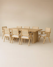 A refined dining set from the Ancient Sands Collection featuring solid natural oak chairs and a beautifully crafted table made from premium plywood with natural oak veneer.