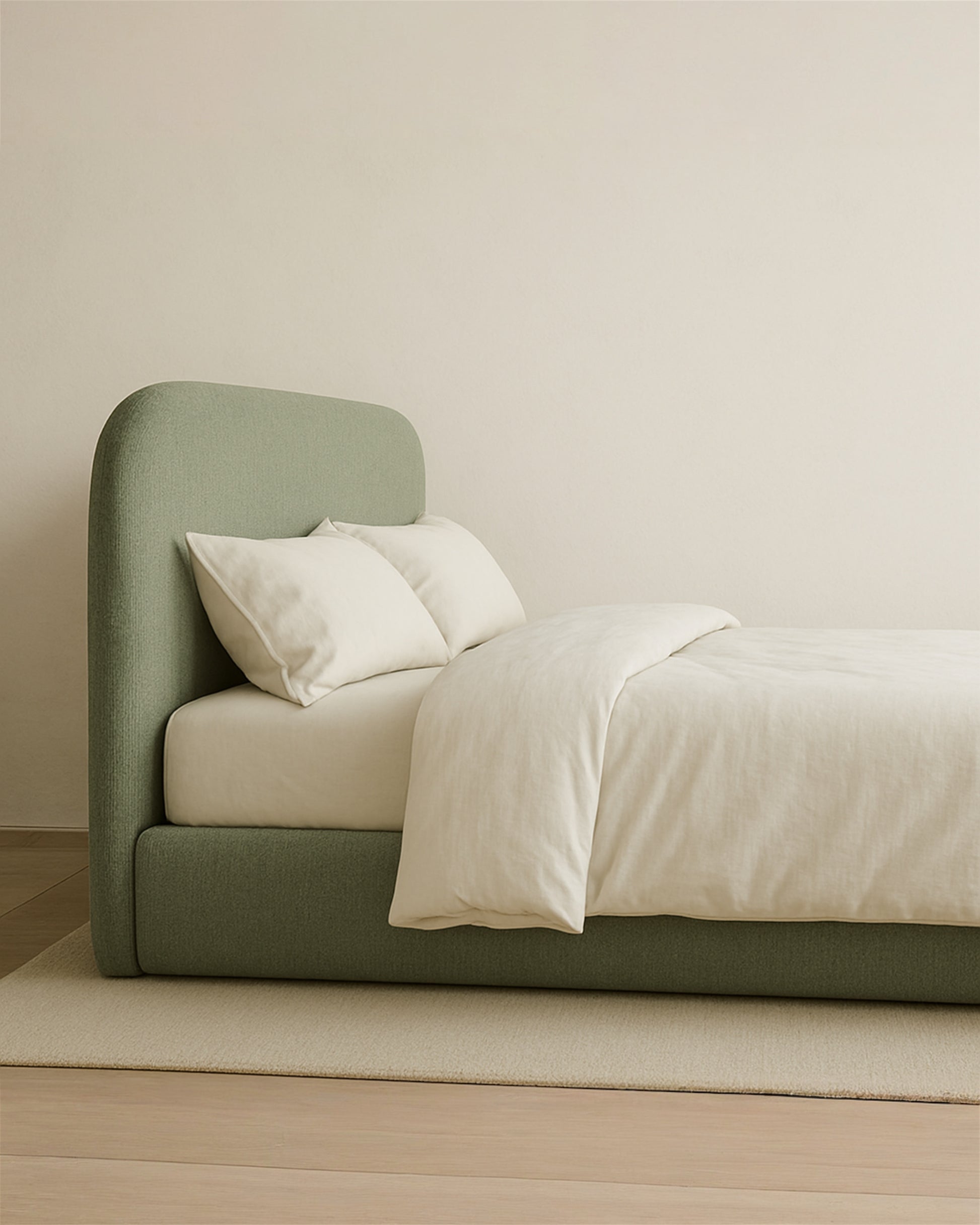 Introducing the luxurious and meticulously Ramona upholstered Bed with boucle fabric, a true masterpiece of comfort and elegance. Handmade with utmost care and attention to detail, this bed exemplifies the perfect blend of artisanal craftsmanship and contemporary design.