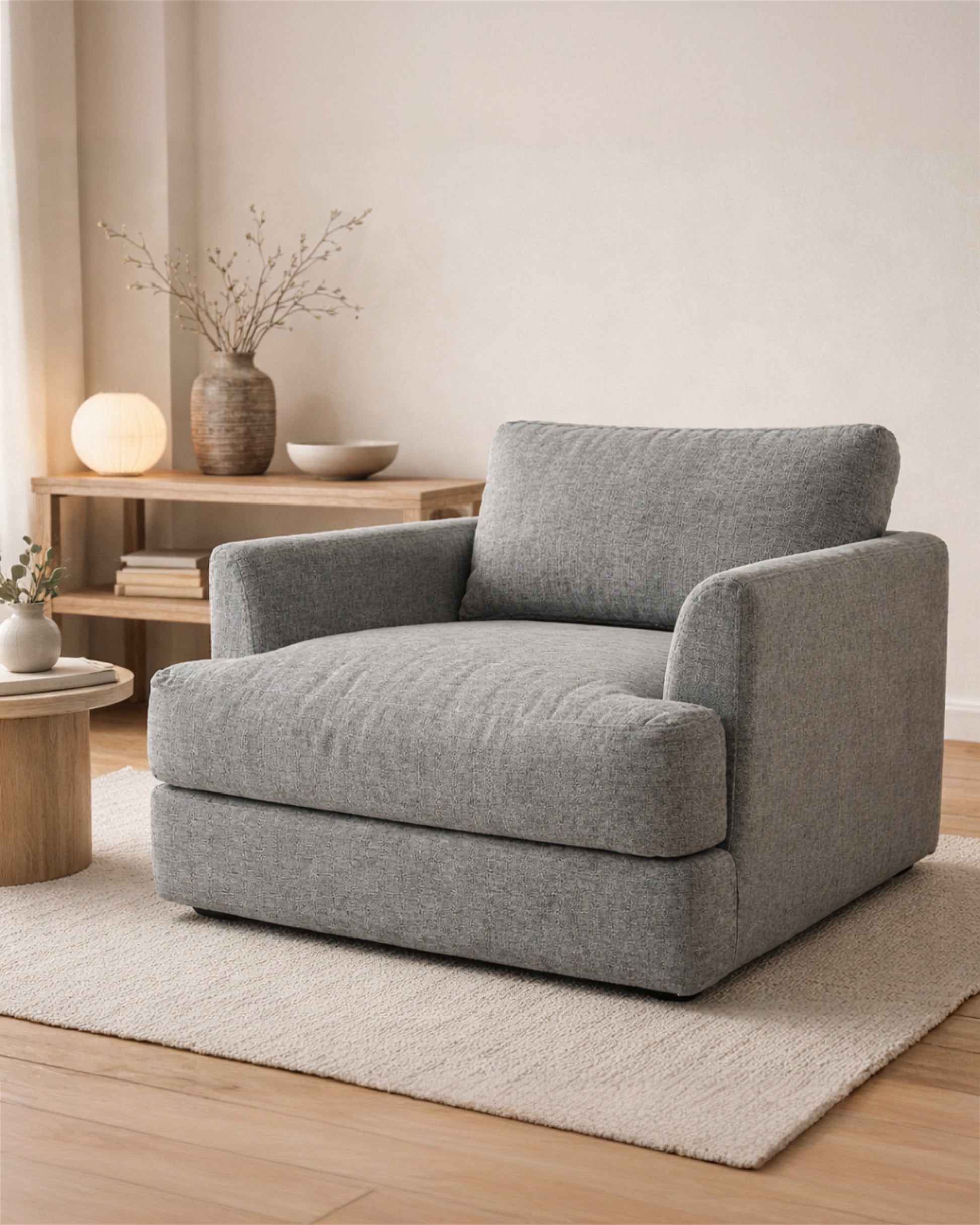 Unbelievably soft chair, Undeniably stylish, made to stay that way. Casual, low slung shape, Sink right in seat, Made of solid zan wooden frame with reinforced joinery.